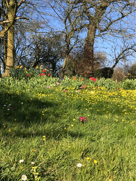 Our next-door neighbour has a magnificent Magnolia tree. It is huge and a herald of Spring when it’s smothered in pale pink blossom, beautiful against the bright blue of the sky. They also have a bank at the front of their garden. At present, it is barely visible due to the hundreds of small Celandine flowers crowning the grass – turning it gold. At night, and when they’re in shadow, they close up tightly waiting for the heat of the sun to warm their faces.