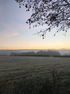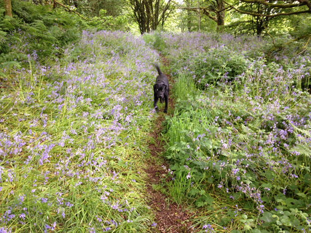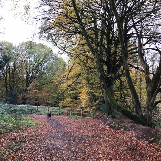 It is a beautiful place whatever the weather. Spring there is wonderful; sprinkles of bluebells lead the way, foreshadowing the open field at the top where they are so numerous they resemble a lilac lake. It’s shady in the summer, while listening to birdsong under the canopy of trees. During autumn the trees proudly display their bright colours turning crimson, russet and copper, their final flourish before they fall and join the others and become part of the earth. In winter, on foggy days, it can feel eerie when the bare branches creak and groan. I imagine ghosts from thousands of years ago whispering and watching. That’s part of the reason I enjoy going there, it makes me feel part of something much bigger when I think about the others who have walked here before me for thousands of years. Otis loved it and would run off and reappear from the gloom, tongue lolling and tail wagging carrying a stick far too big for him that he would use artfully to whack us on the back of the legs.