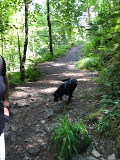 When he was younger, Jase would find a long stick and lob it down one of the ramparts. Otis would chase it to the bottom and skid down on the leaves often turning a somersault! That was the only time he would give something thrown for him back. After two or three of those he would be exhausted and refuse to return it so we knew he’d had enough.