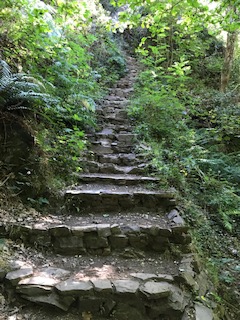 Gazing up at what looked like a magical citadel in the sky, we climbed up what seemed like a thousand steps to get to the bottom of the thin bridge which links it to the rest of the world. It hangs suspended above a deep gorge overgrown with gorse. No cars are permitted to cross it – only bicycles, donkeys and people.