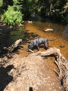 Will lobbed the ball so it went out of the water and Otis ran and got it. It’s a beautiful pool with roses growing around it, so you swim amongst the petals. However, it’s quite difficult to get in and out of quickly. Everyone was calling Otis to bring the ball back. He was wagging away but ignoring us. Will went to the edge and called him over. Otis went to him, dropped the ball and waited until Will went to get it before nudging it away with his nose so he couldn’t reach it. He looked so proud when we all laughed. Such a happy memory which tells a lot about his sense of humour.