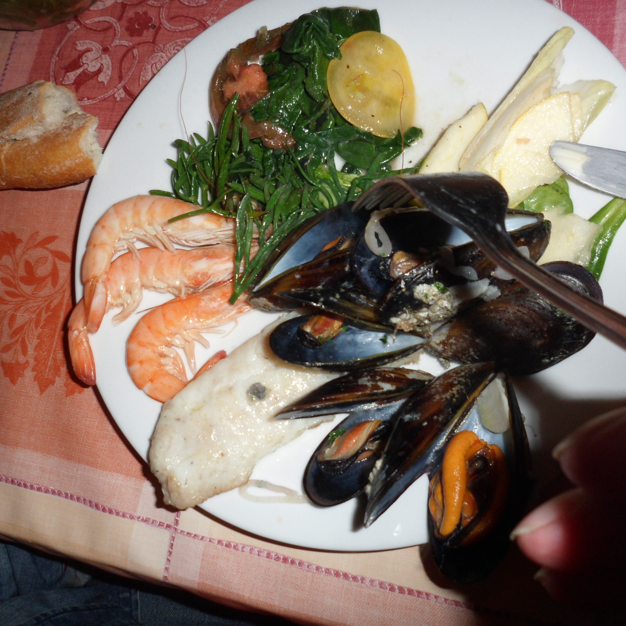 We also swam off the boat again with snorkels. The turquoise sea was full of silver, yellow and black fish darting one way then the other – a synchronised shoal dancing as one – surrounding us. Arriving in Amalfi was an experience – the pretty houses, like little boxes, hewn from stone jut out above the sea – a rainbow pallet of pastel shades clinging to the cliff. I was trying to imagine what it would be like to live there. The view would be sensational but all those people! The air was filled with Italians chattering excitedly and gesticulating wildly, other European accents drifted in and out too. The sun was searing. Pale British people were huddling together in a tiny patch of shade. I could smell coffee, sunblock and cigarette smoke. The sea looked incredibly inviting but there wasn’t a spare inch on the beach which was covered in stripy parasols shading nut brown bodies lying on loungers. We became part of the throng of visitors wanting to explore. I found it fascinating and exhilarating and unnerving as it was just so intense.