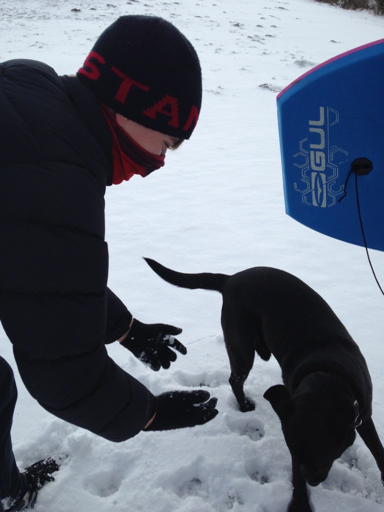 Initially, Otis wasn’t sure when he first encountered snow, but it didn’t take long for him to realise how much fun it was. Will, Jase and I went sledging on a nearby hill and he chased us, ears flapping, on the body board as we slid down over and over again.