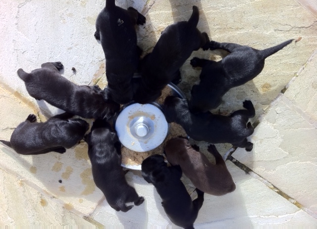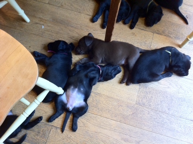 Thirteen years ago, my sister, Liz’s dog, Macy, had nine puppies. All Labradors – eight black – and one brown. Poor Macy had a terrible time giving birth and ended up having a Caesarean which meant she was very weak and had all those babies to feed. Liz said it was hard work as she had to stay up late and get up in the night to make sure all the puppies were getting enough milk. Liz was exhausted, as it was a bit like having nine babies, but she managed to keep them all alive which was quite a feat!