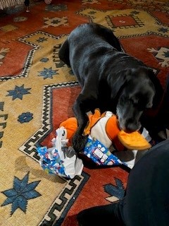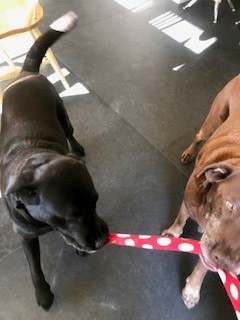 Otis had lots of toys but had a particular penchant for socks. Despite having plenty of his own, which he played tug-of-war with, he liked to steal any left lying around. He played a game where he would walk up to someone wagging his tail with a sock hanging from his mouth asking them to play. As soon as they tried to grab it, he’d move his head away just far enough so it was out of reach. He was a terrible tease and could do this for hours. He liked to feel he had one up on us.