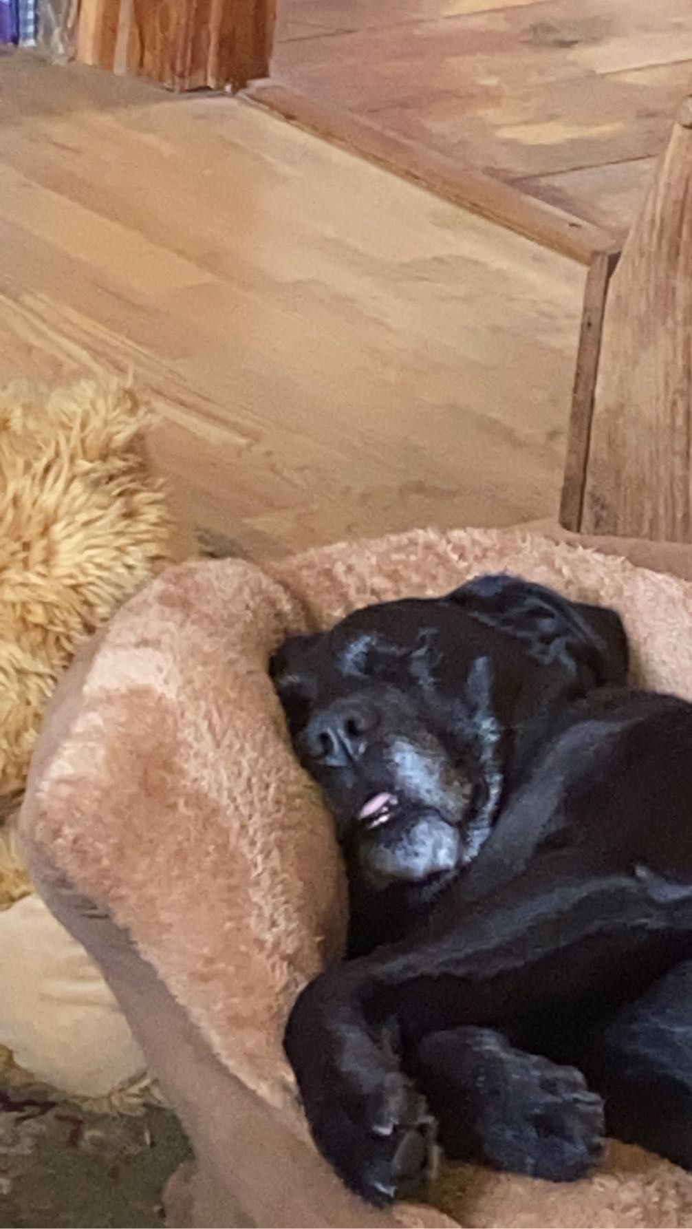 At home, he had two beds. One in the kitchen and one in the front room. He always wanted to be in the thick of it, wherever we were and so did his dog hair – the gift that kept on giving!