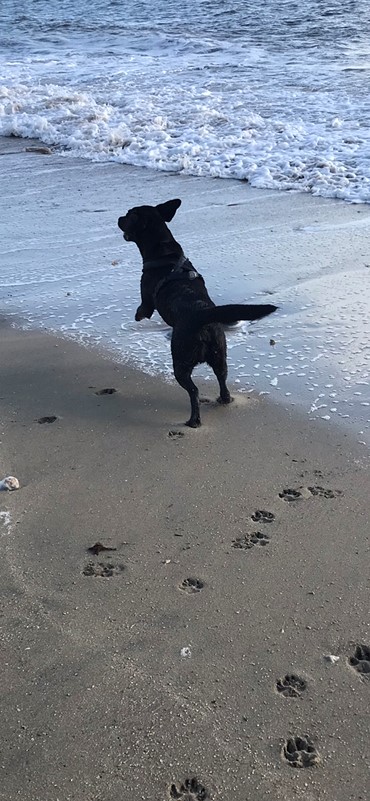 Although he loved the beach, he wasn’t so keen on swimming. When he was quite small, we took him for a walk by the canal and he fell in, which freaked him out – and us – as we had to rescue him. He was always wary after that and unlike most labs, who love swimming, he only liked to paddle. When we swam in the sea, he’d pace about on the beach looking perturbed then force himself to come in as he thought I need saving. He wasn’t good at it though. He would launch in, swim out, lunge at me while scrabbling and scratching me with his paws to get me out then head back to shore.